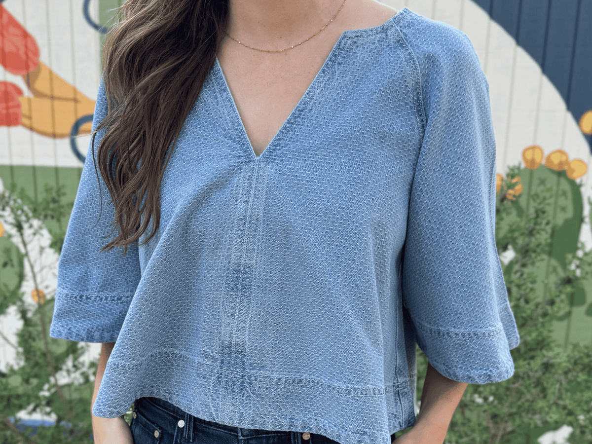 Chambray + Tiny Flowers Floral Stella Blouse, 100% Cotton