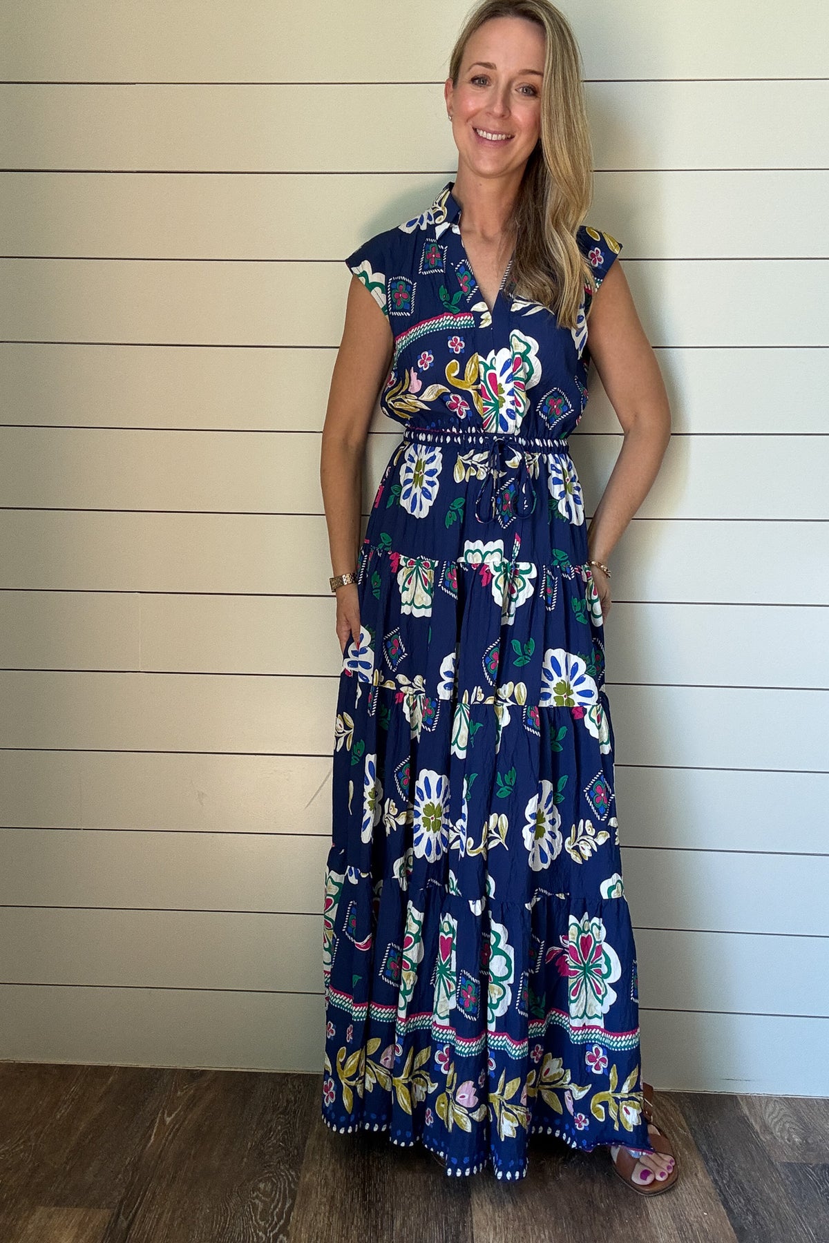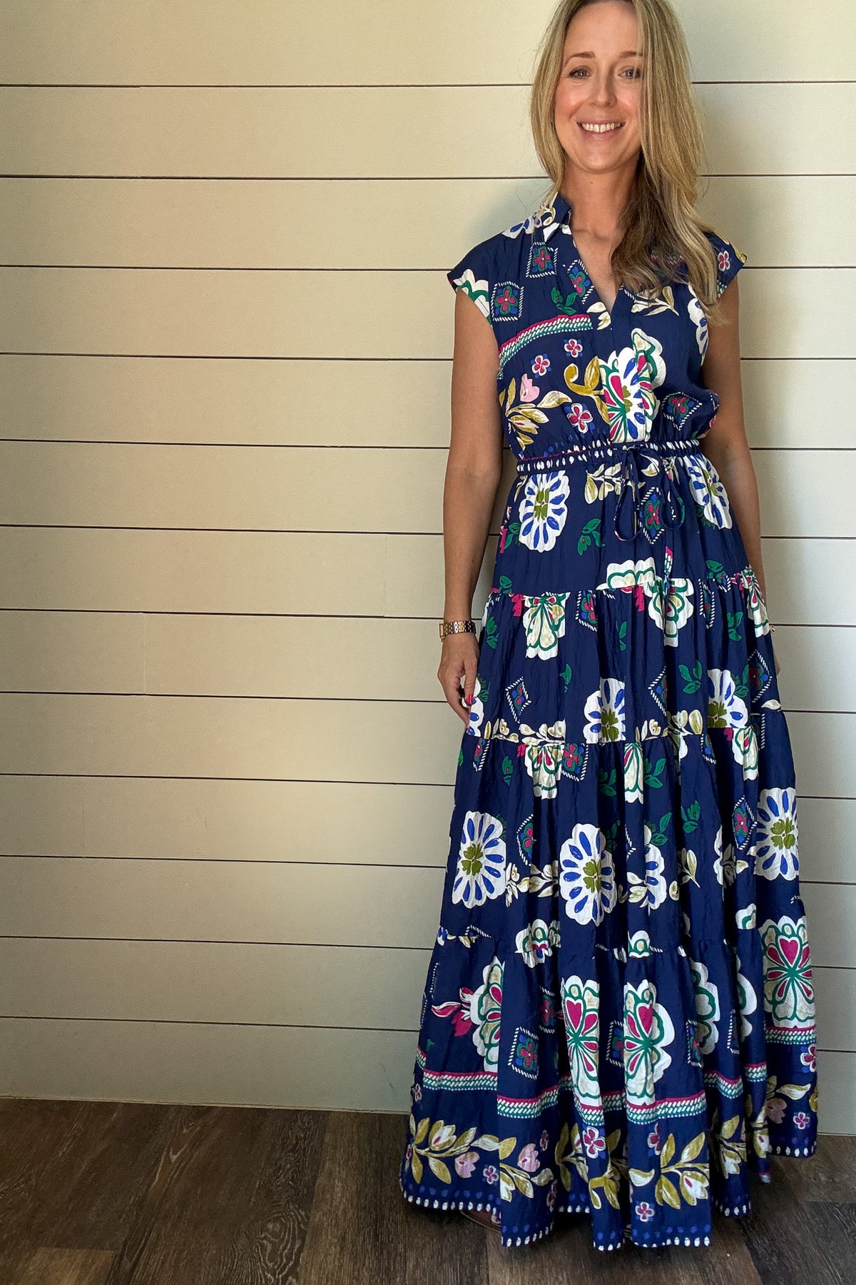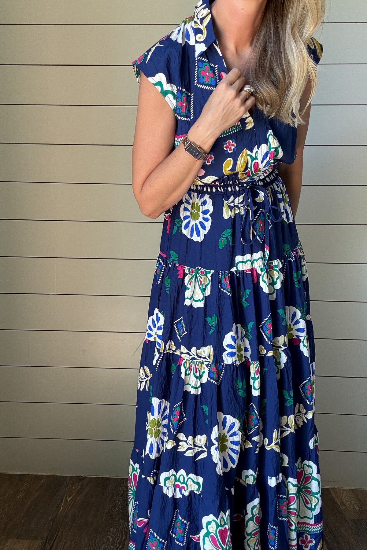 Bright, bold, and made for sunshine—this floral print dress brings the fun. The navy background makes the colorful print pop, and the tiered skirt adds movement and charm. A collared neckline and cap sleeves give it a polished touch, while the adjustable tie waist keeps things flattering and comfy. It’s lined to the knee for easy wear and just the right amount of coverage. A no-fuss option that’s easy to throw on and go.