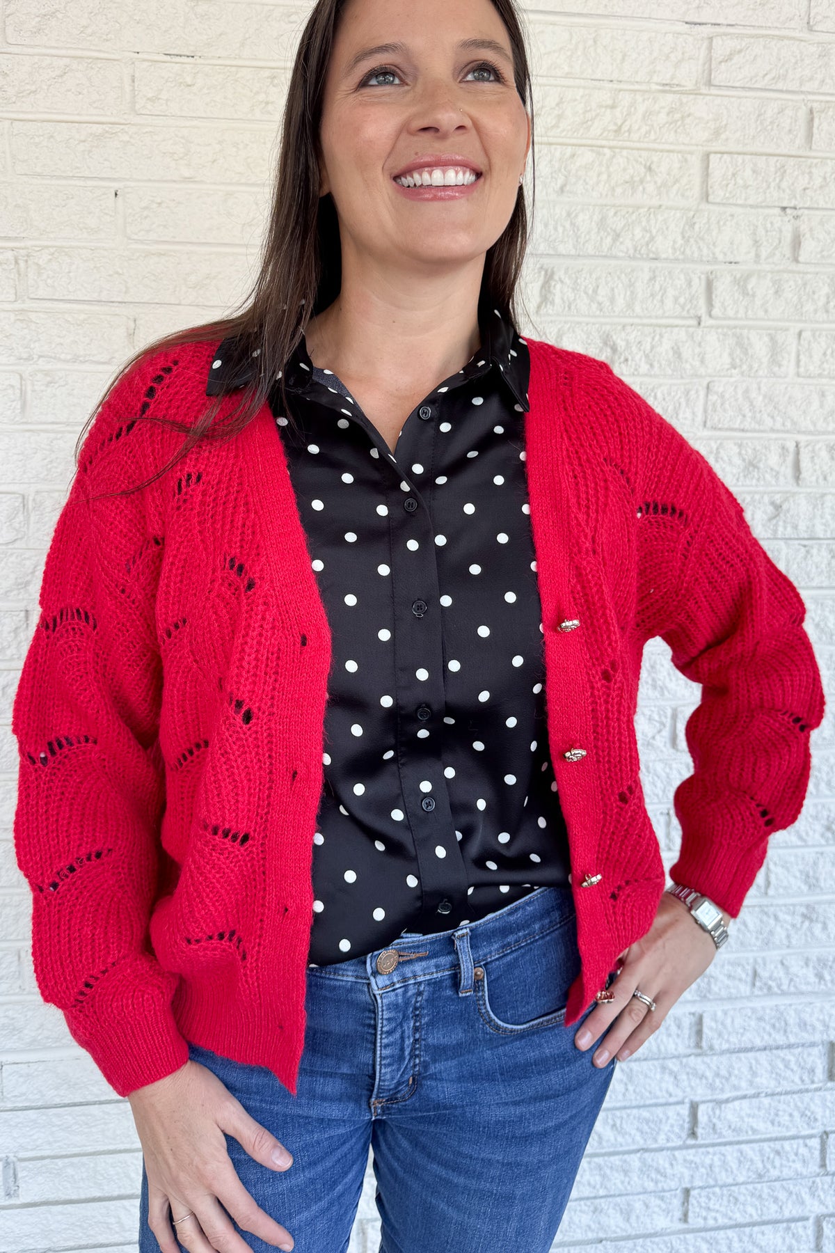 Open Knit Red Cardigan